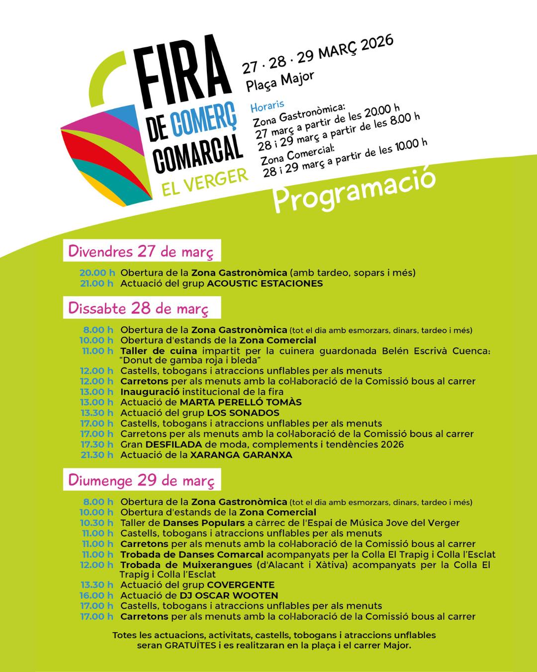 Destacats 29 març-08:00/23:30 Fira de Comerç Comarcal El Verger