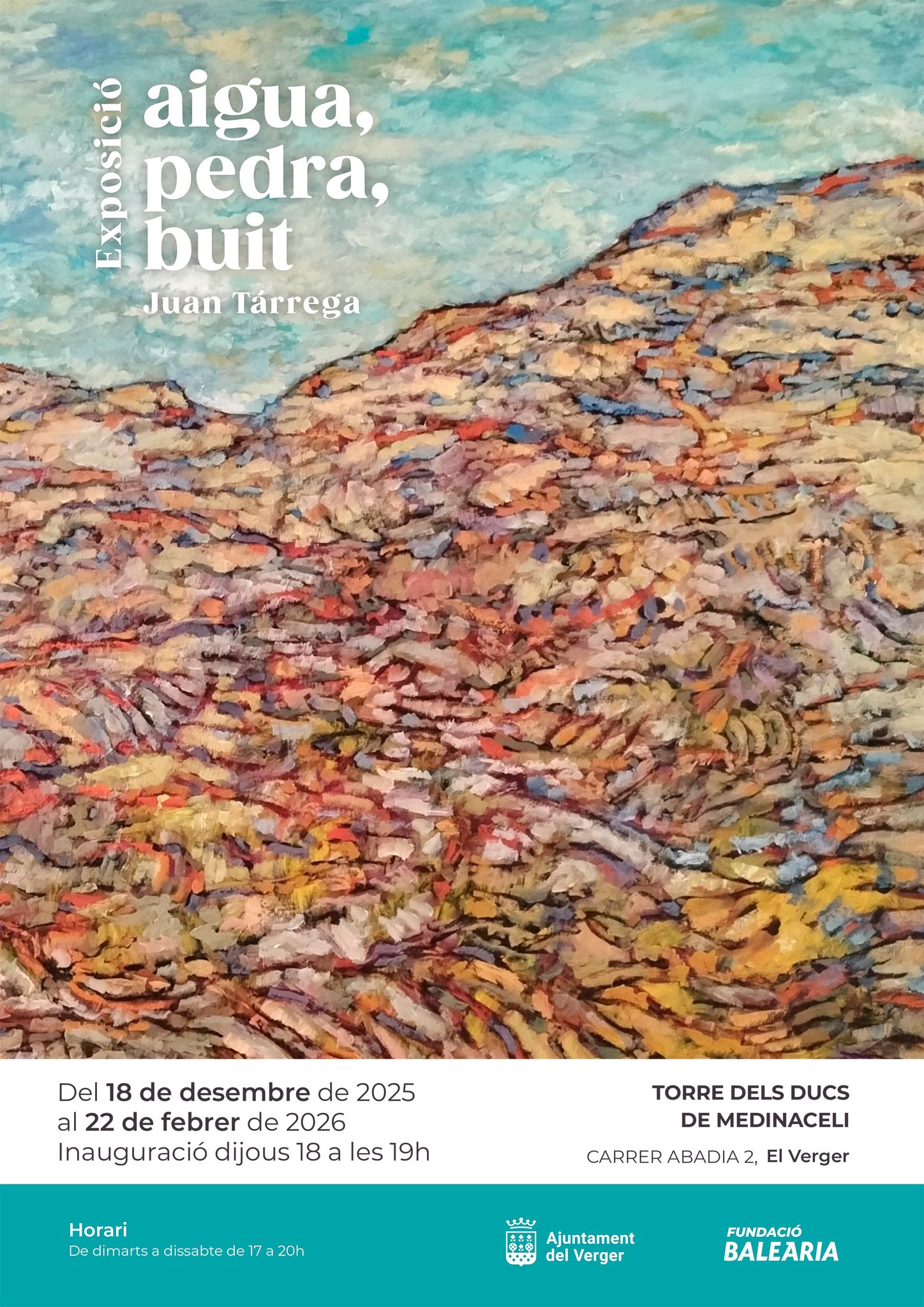 des. 26 Featured 17:00 / 20:00 Exposició aigua, pedra, buit de Juan Tàrrega Torre dels Ducs de Medinaceli C/ Abadia, 2, El Verger Esdeveniment Details Get Directions